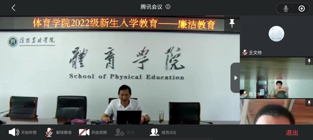 为不断提高大学生道德自律意识,增强拒腐防变的良好心理品质,9月14日下午,体育学院开展了线上廉洁文化教育,院党总支副书记李远胜主讲,休闲体育专业2022级全体学生参加。