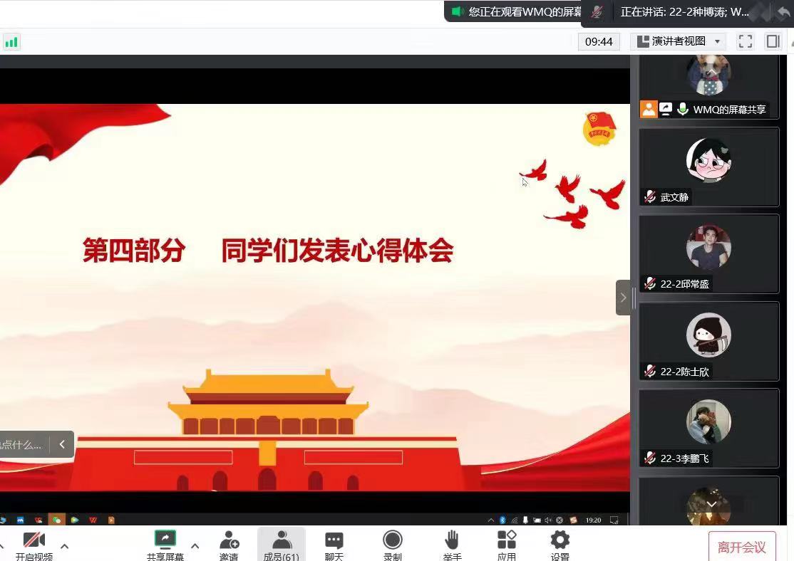 活动伊始,参会学生佩戴团徽,激昂宣誓,在主持人的带领下齐唱团歌。随后主持人带领同学们学习领会党的二十大精神的丰富内涵和核心要义,切实把思想和行动统一到报告精神上来,进一步坚定历史自信、扛起时代重担,坚定不移听党话、跟党走,以实际行动奋进新征程、诠释新青春、创造新业绩,在全面建设社会主义现代化国家的新征程上奉献不可或缺的青春力量。活动期间,主持人与同学们积极互动,气氛融洽。