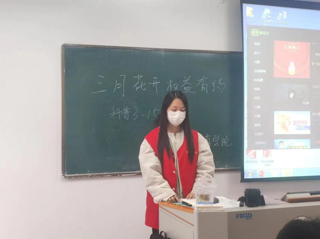 活动主要通过“权益科普”以及“观看央视3.15晚会”两部分进行,志愿者们向同学们普及消费者权益法律法规相关知识,倡导同学们积极维权保护自身的合法权益,通过观看“3.15晚会”,引导同学们树立正确的消费观,教育同学们积极维护自身权益,树立诚信意识。