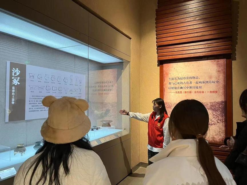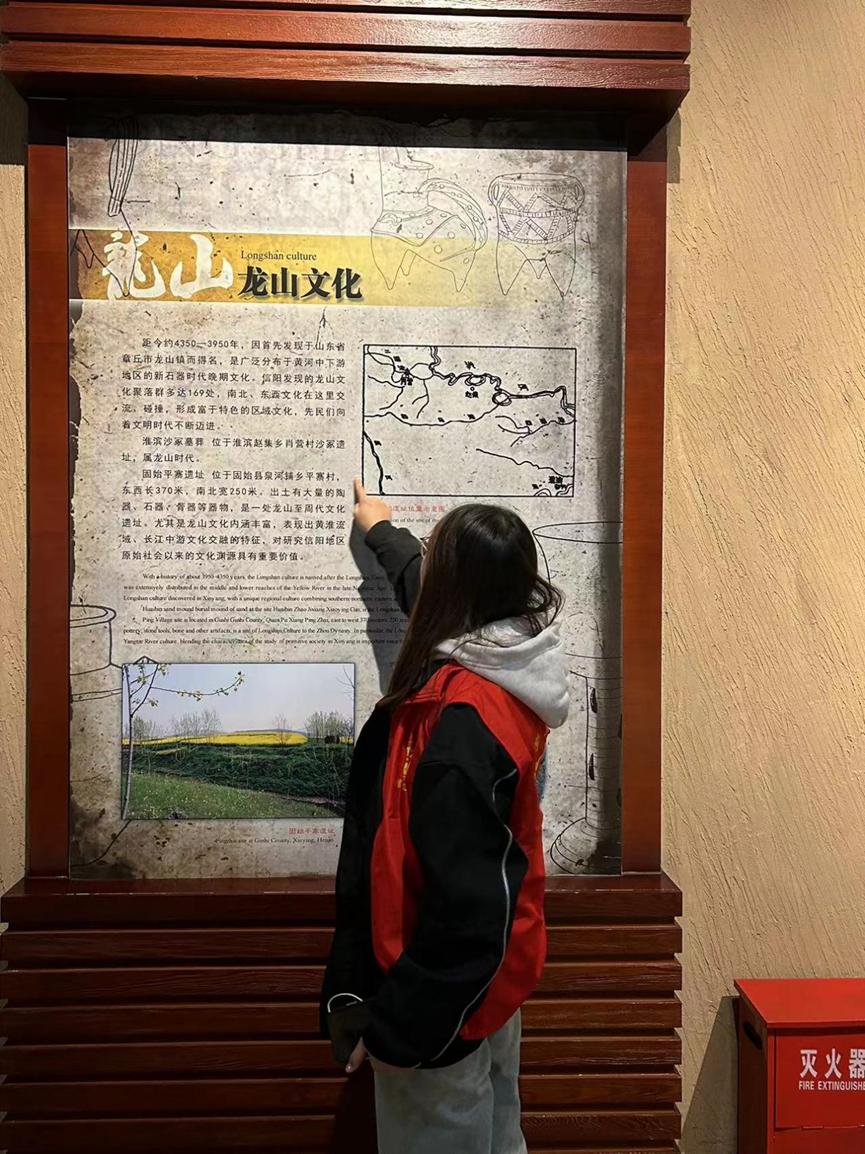 活动中,志愿者们首先跟随工作人员了解了博物馆建设的重要意义和对文化的教育普及作用,认识到博物馆展品对于信阳发展的时代内涵,随后志愿者们耐心倾听游客们的疑问,迅速了解游客的需求,并根据自己对文物的理解及知识储备,向参观人员生动而有趣的介绍了各类文物,向更多人分享了文化的魅力,传递了文化的能量。