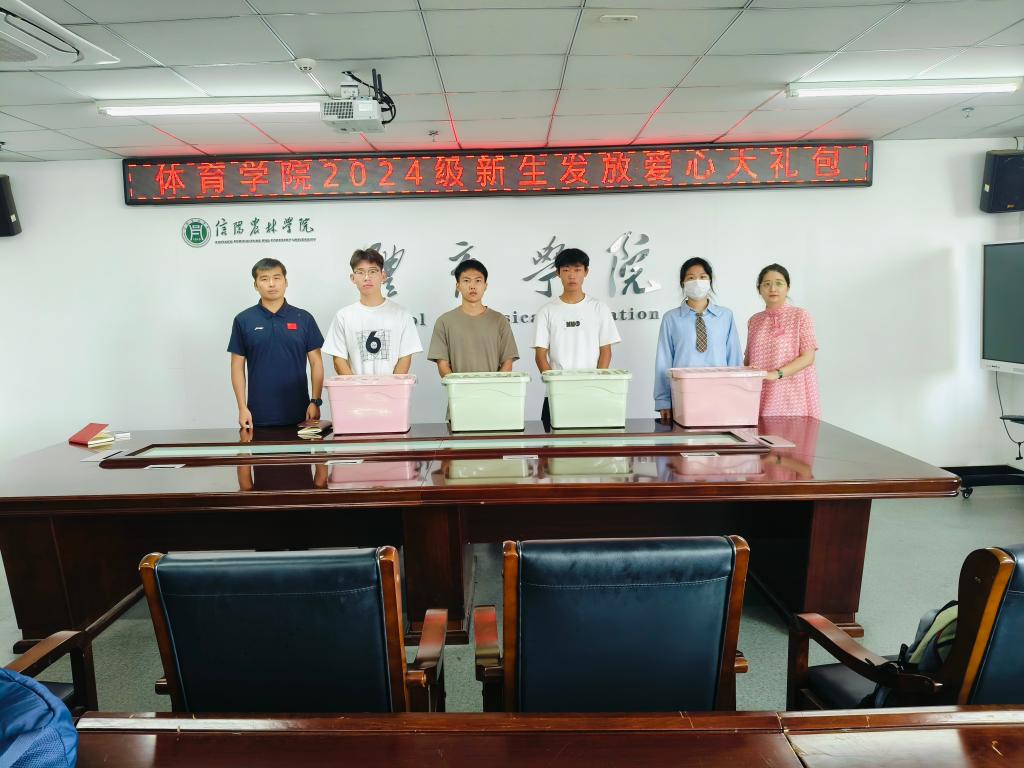为更好地贯彻落实国家资助政策,进一步加强学生资助工作成效,体现学校对家庭经济困难学生的关怀。2024年9月8月上中午,体育学院为2024级贫困新生发放爱心大礼包。