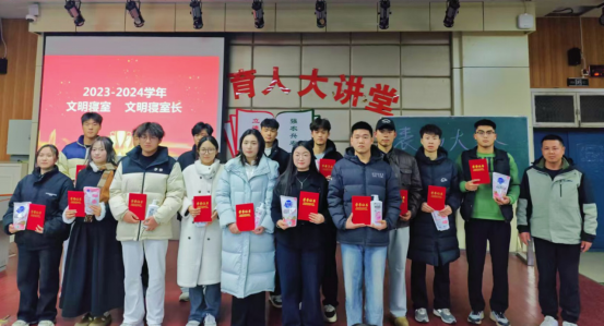 大会集体表彰了在德智体美劳全面发展的“三好学生”46名、勇于担当的“优秀学生干部”15名、展现集体风采的3个“文明寝室”和3名“文明寝室长”,学院领导上台为获奖学生颁发证书及奖品。