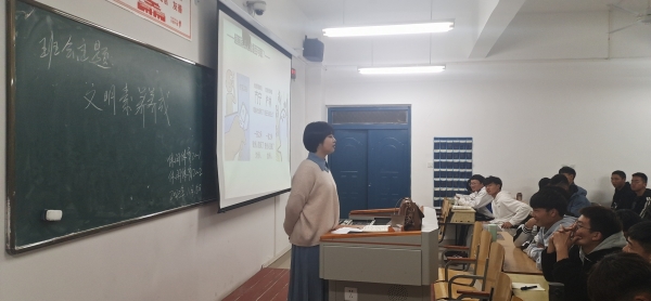 活动伊始,龚静阳向同学们介绍了本次班会的目的,旨在强调文明养成的重要性,使同学们树立良好的文明价值观,发扬中华民族的优良传统文化。随后通过双11这一学生们关注的热点话题,引发对超前消费的讨论,探究超前消费、互相攀比等不良之风的形成原因,最后龚静阳对本次班会做总结,希望同学们树立正确的消费观,量入为出,适度消费,避免盲从,理性消费,保护环境,绿色消费,勤俭节约,艰苦奋斗。