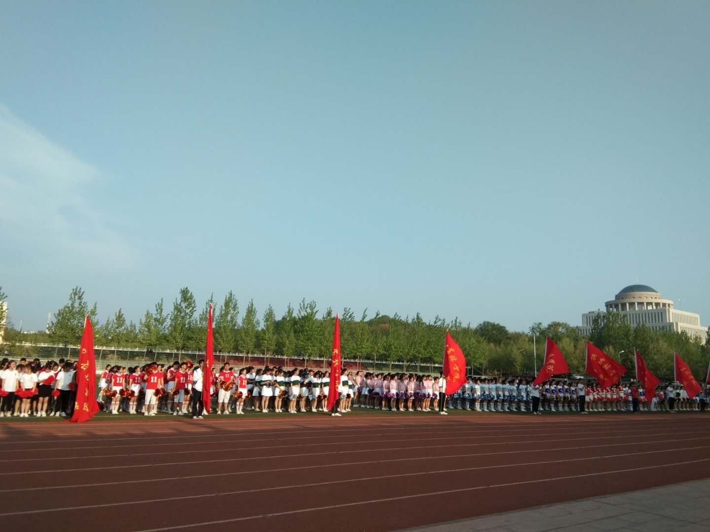 4月12日下午,以“激情四月、活力无限”为主题的beat365在线平台官网第二届健身操比赛在田径场举行。体育学院主任李俊、副主任郭德兵参加开幕式,体育学院罗兰、李曼筠、韩智、刘海、赵云龙、郭晓芳、吴红梅、陈树、彭浩等老师担任本次比赛评委。