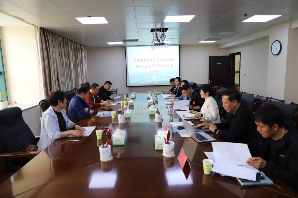 4月9日下午,河南省高校体育专业学生就业指导与技能评定项目对接会在beat365在线平台官网行政楼617会议室召开。校党委委员、副校长易军鹏、河南省学生体育总会常务副主席兼秘书长郭蔚蔚、河南省学生体育总会副主席崔伟出席会议,信阳师范大学、信阳职业技术学院、信阳艺术职业学院及beat365在线平台官网四所高校体育院系负责人、行业专家、企业代表共同参会。