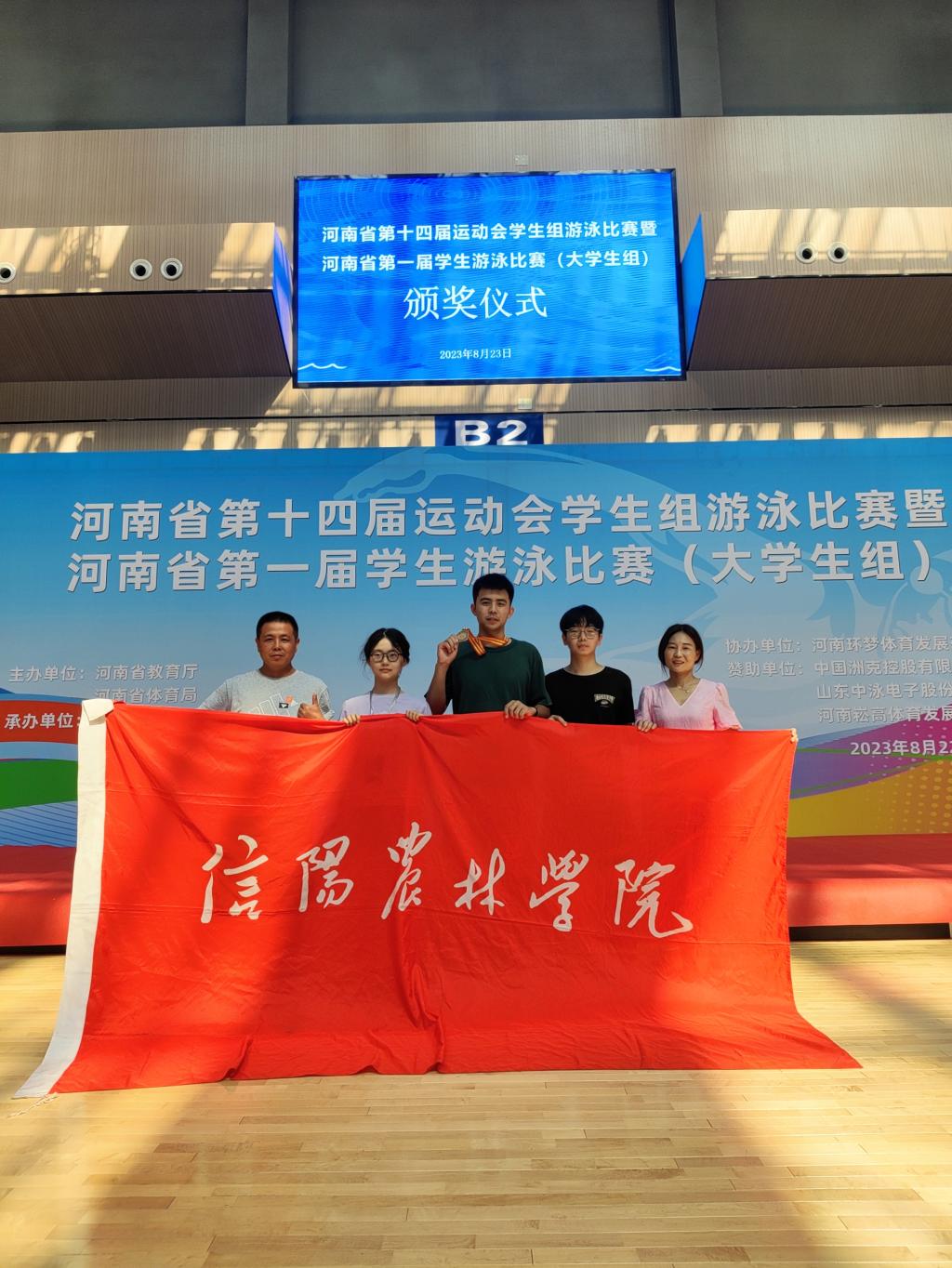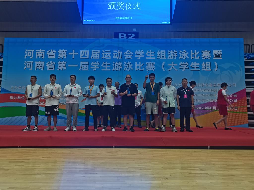8月22日至23日,由河南省教育厅、河南省体育局主办;河南省学生体育总会游泳协会、郑州航空工业管理学院承办的河南省第十四届运动会学生组游泳暨河南省第一届学生游泳比赛(大学生组)在郑州航空工业管理学院(龙子湖校区)游泳馆举行。beat365在线平台官网游泳队参加了此次比赛,并荣获一个第三名、两个第四名、一个第六名的好成绩。