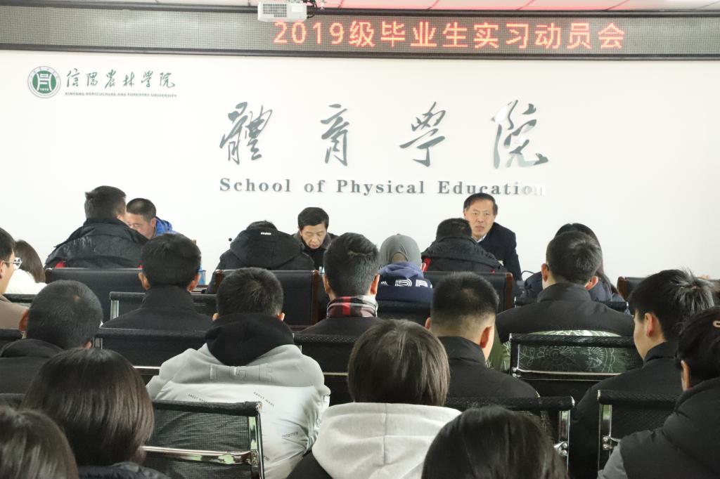 12月28日下午,为确保2022届毕业生实习工作安全有序开展,体育学院在会议室召开了2022届毕业生实习动员会。院党总支书记李耕、院长李俊、副院长郭德兵、各教研室主任、各位指导教师及我院2022届毕业生参加会议,会议由副院长郭德兵主持。