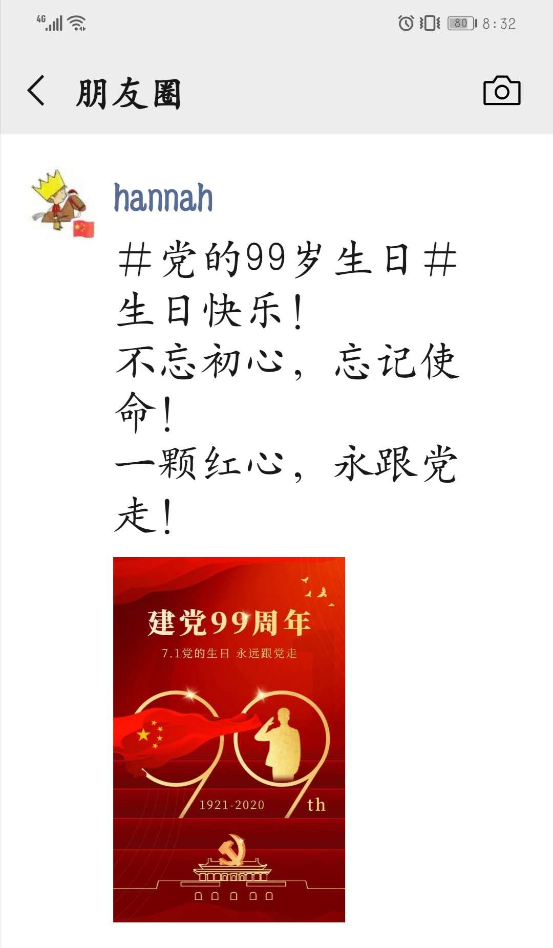 同时,支部全体党员同志还以发微信朋友圈的方式庆祝党的生日,发表作为党员的所思所感。