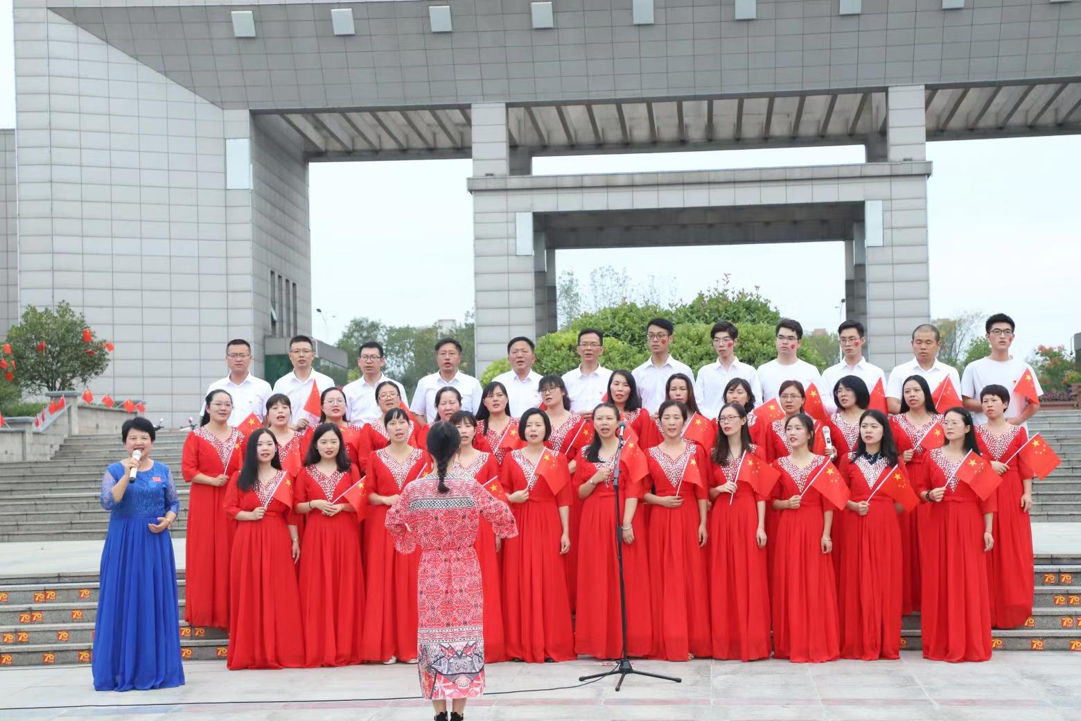 金秋九月,硕果飘香,在这个四处洋溢着丰收喜悦的季节,在我们即将迎来伟大祖国70年华诞之际,924日下午,外国语学院全体师生齐聚在学校南大门小广场,举行以“不忘初心,牢记使命,传承红色基因,传唱经典红歌,争做时代新人”为主题的经典红歌传唱活动,为我们伟大的祖国歌唱,向祖国70年华诞献礼。
