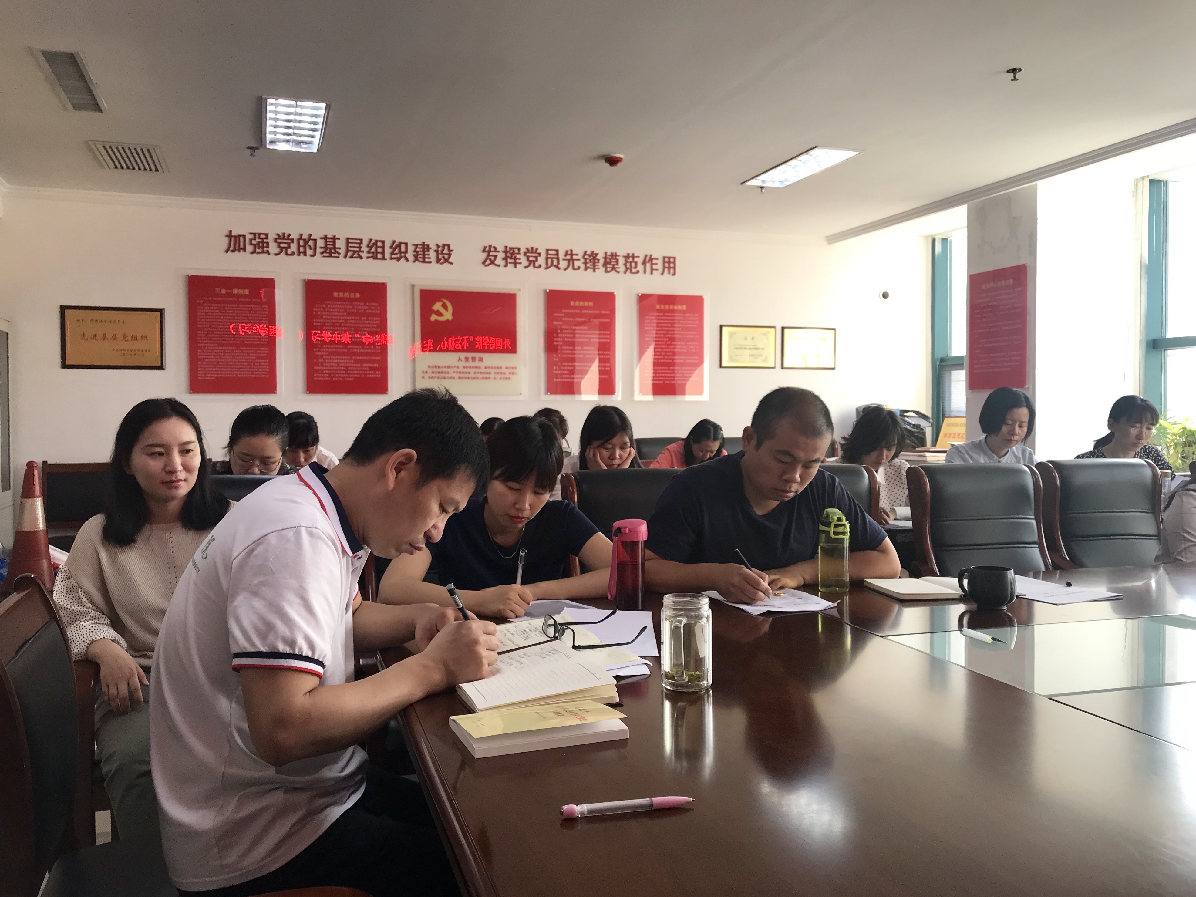 会议主要学习了文章《深化标本兼治 一体推进不敢腐、不能腐、不想腐——河南开展以案促改工作的创新和实践》及以案促改的案例——海南省琼台师范学院腐败窝案剖析。“为人师者,必先正其身,方能教书育人”,党总支书记张志强在学习中指出琼台师范学院出现的贪污腐败案例主要原因有:一是管党治党责任缺失,学校前进航向偏离;二是纪律意识淡薄,对各项规定置若罔闻;三是思想防线崩塌,在金钱的诱惑下突破底线。他结合琼台师范学院腐败案例强调要进一步加强学院党风廉政建设和纪律作风教育,提升党员干部廉洁自律意识,筑牢党员干部拒腐防变的思想防线,同时要加强党性修养,严格按制度办事,做到慎行、慎言、慎思。最后,全体教工党员一起学习了《中国共产党廉洁自律准则》和《中国共产党纪律处分条例》。会上还对接下来的“不忘初心、牢记使命”主题教育作了其他安排。(外国语学院)
