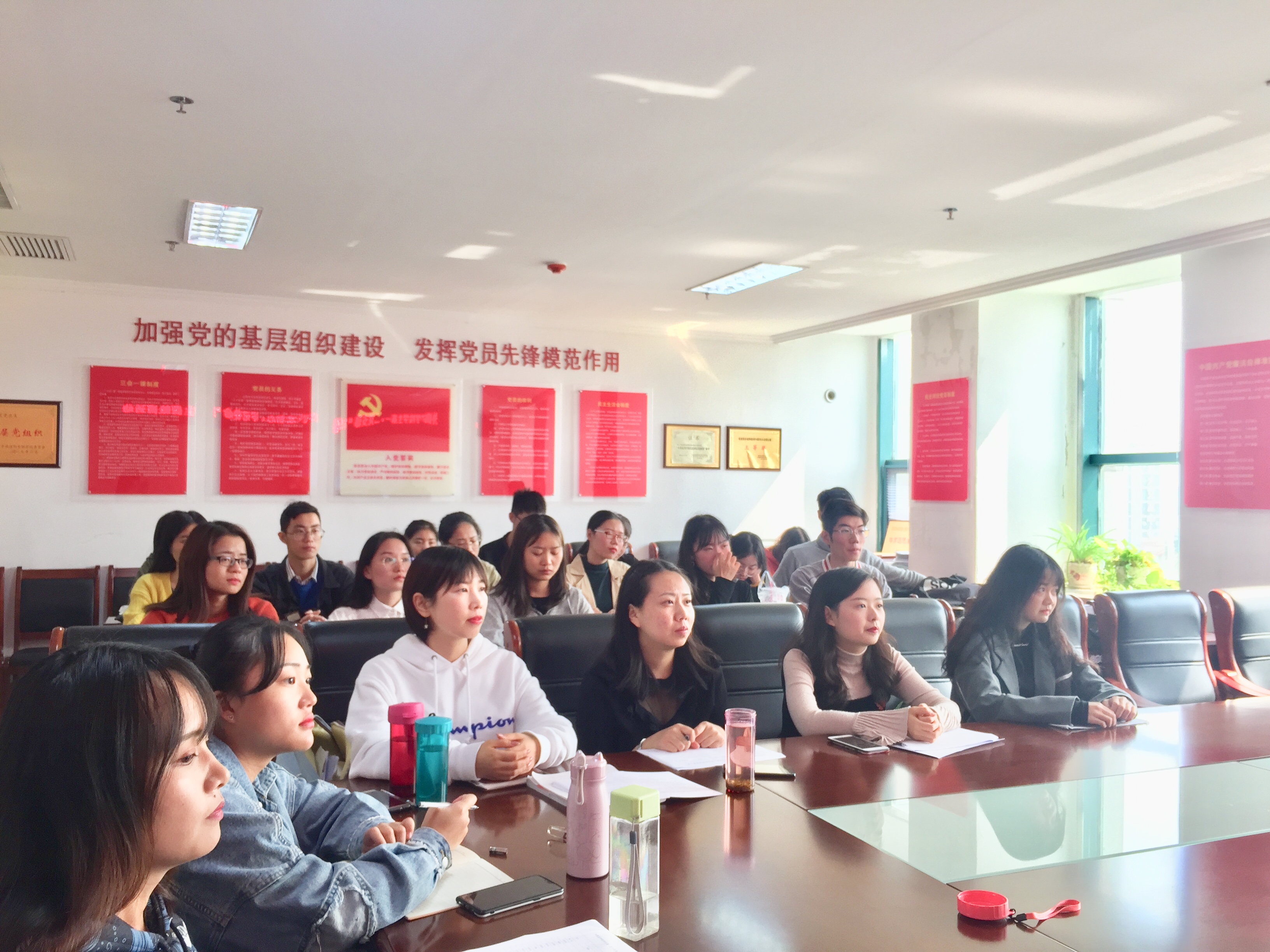 为深入学习贯彻党的十九大精神和习近平新时代中国特色社会主义思想,扎实推进“不忘初心、牢记使命”主题教育。10月18日中午,外国语学院学生第一、二党支部在行政楼803开展了“不忘初心、牢记使命”主题教育系列活动——微党课活动,学生第一、二党支部书记范琼琼、朱俊梵,组织委员徐文君及全体学生党员参加了本次活动,微党课由学生党员代表高晓萌、王佳珍主讲。