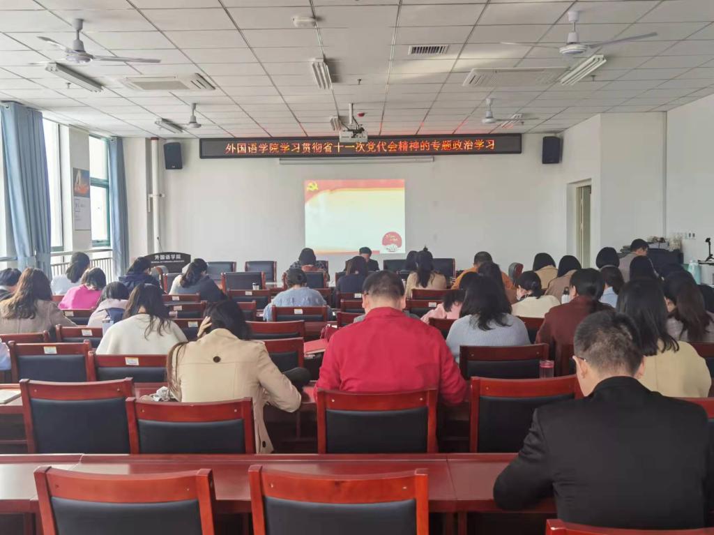 会上,张书记组织大家学习了省第十一次党代会精神。省第十一次党代会精神是在我们党成立100周年的历史节点、开启全面建设社会主义现代化河南新征程的重要时刻召开的一次重要的会议。此次会议对于构建河南建设的宏伟蓝图,具有很强的政治性、思想性、战略性、前瞻性、指导性,对于我省十四五发展迈好第一步、见到新气象,建设社会主义现代化河南具有重要意义。张书记强调,我们学习省第十一次党代会精神精神,要坚持以习近平新时代中国特色社会主义思想为指引。全体教师要多角度、全方位学习省第十一次党代会精神精神,要结合深入学习习近平总书记关于高等教育系列重要讲话精神,领会精神实质、把握核心要义,要紧抓我省创新驱动、科教兴省、人才强省战略,紧盯高校布局、学科学院、专业设置优化调整,跟上省委的战略部署和学校党委的工作要求,以实实在在的工作成效为学校发展作出贡献。通过学习省第十一次党代会精神精神,我们更要注重推动文化繁荣兴盛,提升文化软实力,持续强化思想引领,扎实推动党史学习教育,强化担当作为。