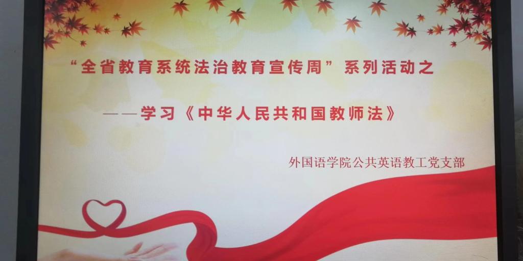 为提高学院教职工的法律观念和法律意识,提升基层党组织的组织力、战斗力与凝聚力。根据学校的相关部署,结合我院党总支制定的领学制度等实际情况,4月26日下午,外国语学院公共英语教工党支部全体教师党员和部分教职工在文学艺术中心408举行“法制宣传教育”主题党日(扩大)系列活动。