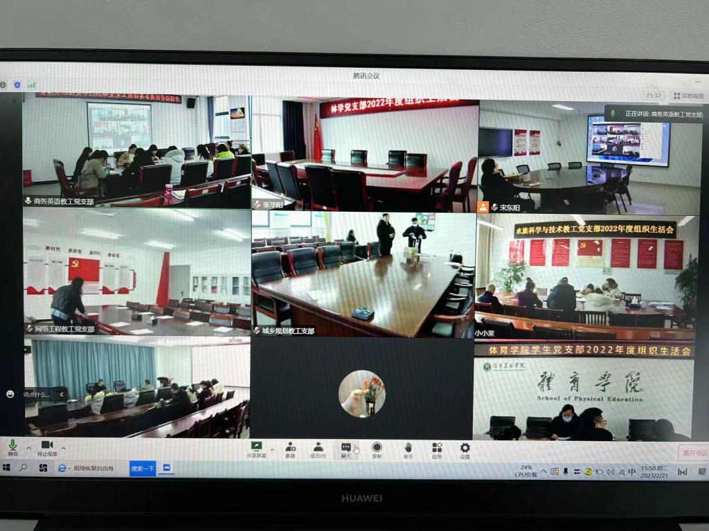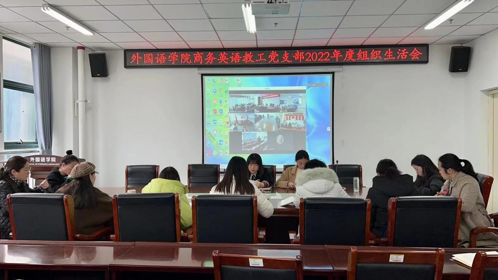 2月21日下午,商务英语教工党支部在文学艺术中心402会议室召开2022年组织生活会,会议由商务英语教工党支部书记嵇丽娜主持。商务英语教工党支部全体党员参加会议,校党委组织部进行线上督导。