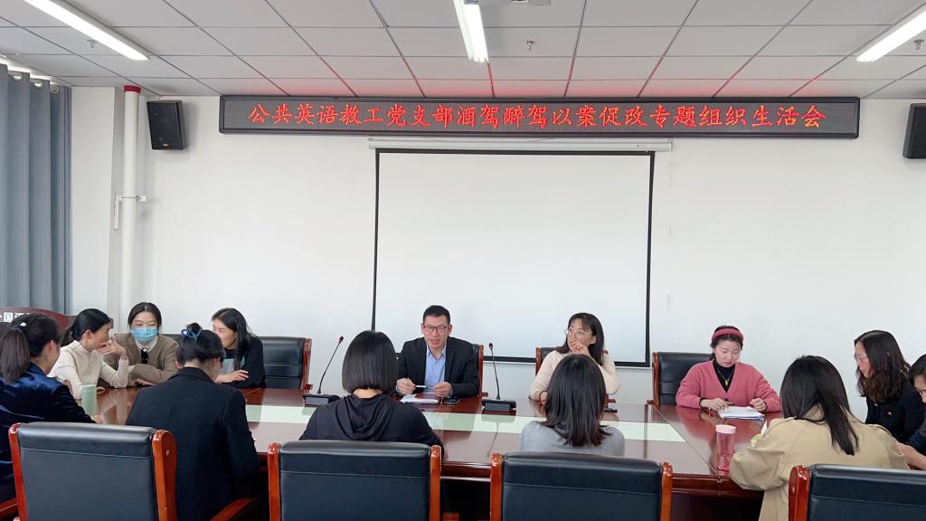 11月7日下午,外国语学院教工党支部在文学艺术楼408开展酒驾醉驾以案促改专题组织生活会。党支部全体党员参会。会议由支部书记张录平主持。