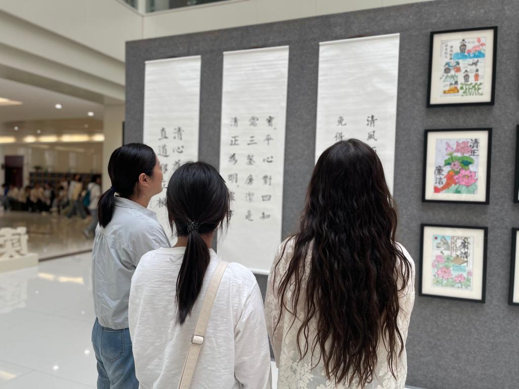 展览现场,一幅幅以廉洁为主题的书画作品琳琅满目,既有气势磅礴的书法大作,也有细腻入微的绘画精品。每一幅作品都蕴含着深刻的廉洁寓意,让观展的师生们深受启发。