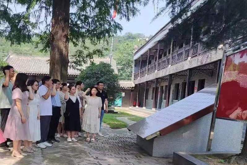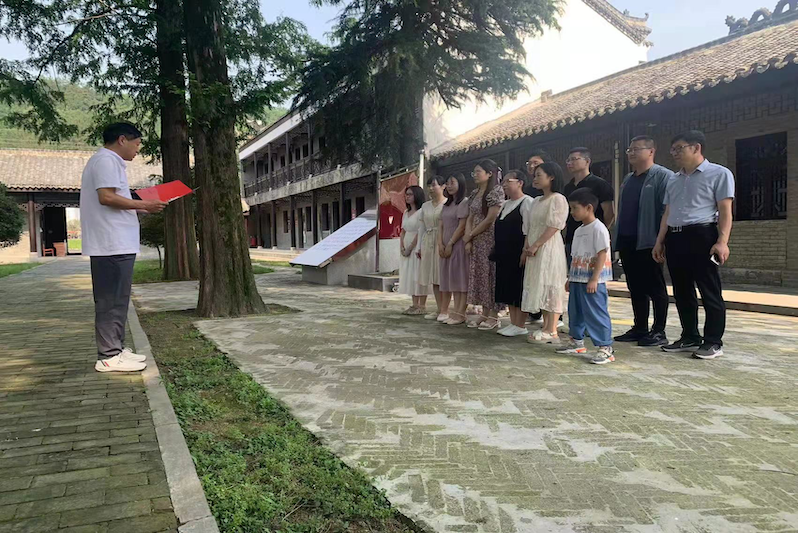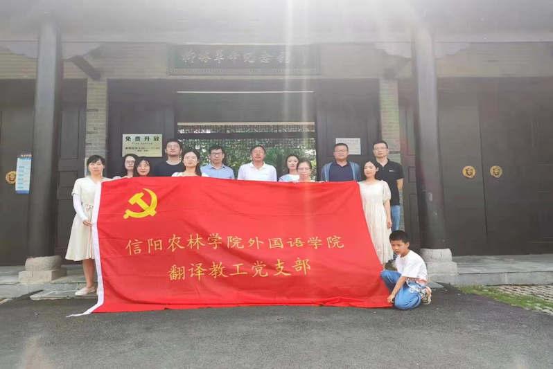 为进一步学习贯彻党的二十大精神,贯彻落实习近平总书记在党史学习教育动员大会上的重要讲话精神,激励广大党员坚定理想信念,更好地发挥党员的先锋模范作用2023611上午外国语学院党总支书记张志强、副书记吴宏及翻译教工党支部全体党员赴红色革命根据地——信阳柳林革命纪念馆开展“深悟践行党的二十大 追寻红色足迹忆初心”主题党日活动。