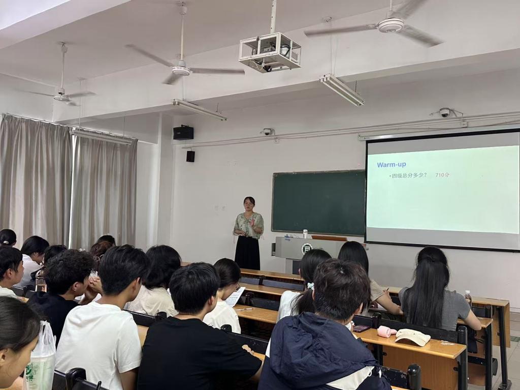 为提升学生英语综合能力、助力全国大学英语四、六级考试,外国语学院于2025年5月至6月上旬举办2025年度四六级备考系列公益讲座,通过系统化指导助力学生高效备考。本次系列讲座涵盖听力、阅读、翻译、写作四大模块,由学院优秀教师团队分模块进行专业指导。