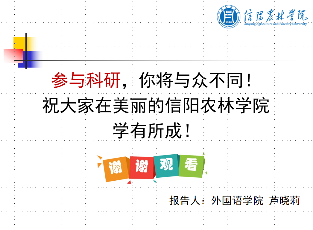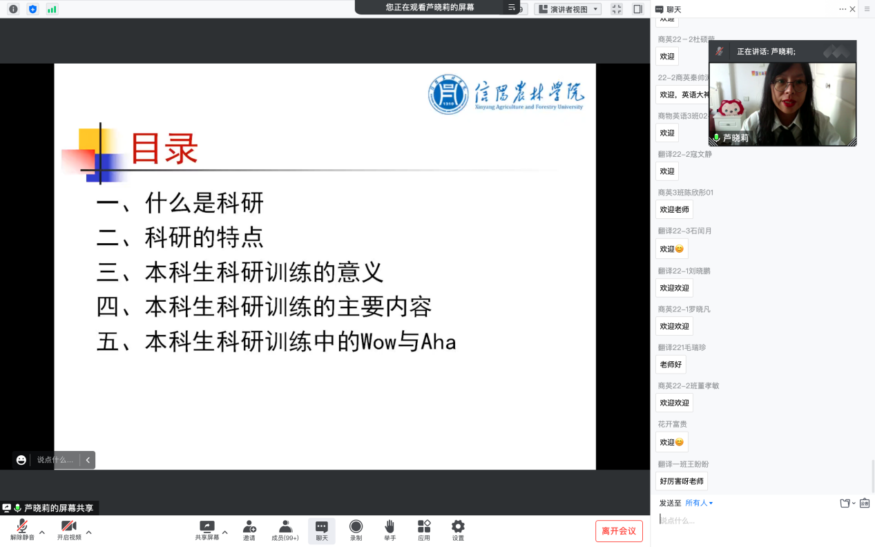 2022914日上午1030分至1130外国语学院通过腾讯会议举办了2022级本科生科研素质培养报告会学院第一期博士论坛,外国语学院副院长芦晓莉博士担任本次报告会主讲人。2022级全体新生以及辅导员老师们聆听了本次报告会,会议由新生辅导员贾燕航老师主持。