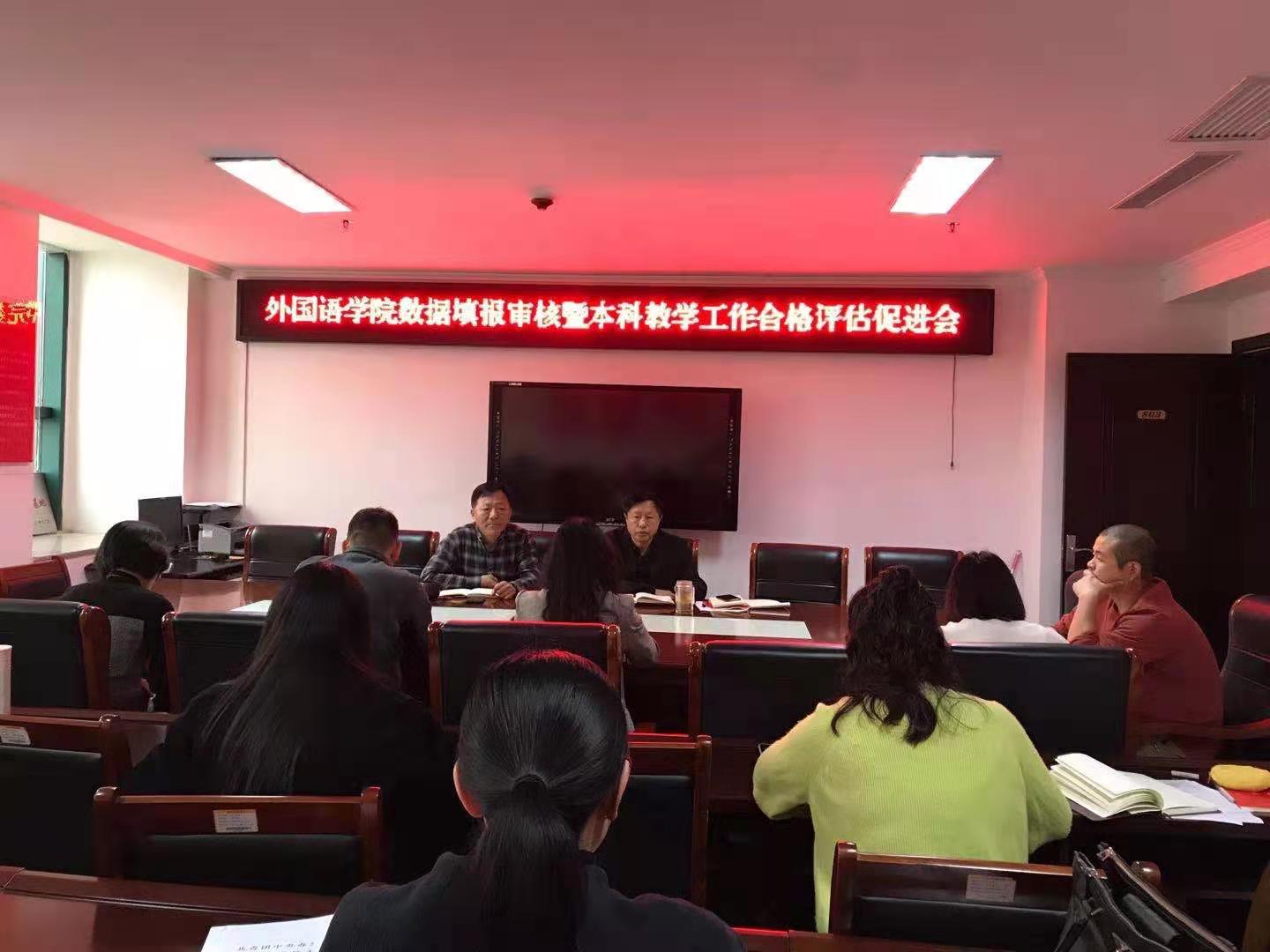 4月21日上午,外国语学院召开数据填报审核暨本科教学工作合格评估促进会,对预评估期间的主要工作进行再次安排。学院领导班子、各教研室主任、副主任以及骨干教师参加了会议。
