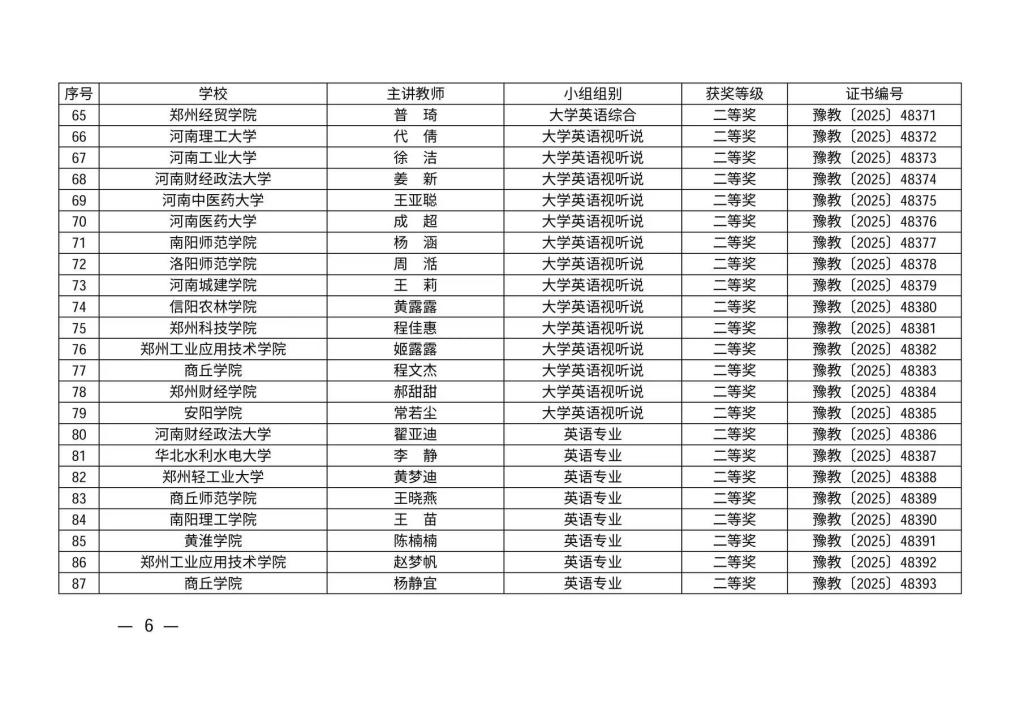 6月21—22日,第六届河南省本科高校教师课堂教学创新大赛外语教学赛道暨第十六届全国高校外语教学大赛河南省赛(大学英语视听说组)在郑州商学院举行。我院青年教师黄露露代表学校参赛,荣获视听说组二等奖。