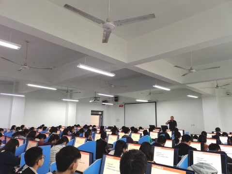会议伊始,张霞老师和王珺玥老师对商务英语专业进行了简单的介绍。在同学们对商务英语专业有了一个大概的认识之后,老师们又从更深层次对该专业的发展与就业进行了讲解分析。接着,闫达老师和吴甜甜老师对翻译专业进行介绍,并对大家最关心的问题─“如何学好自己的专业”进行了详细的讲解。紧接着,老师通过举例子的方式,为同学们列举出了多个本院优秀学生的学习情况并进行了总结。最后,老师勉励同学们:书山有路勤为径,学海无涯苦作舟。无论专业知识多么枯燥,学习的过程多么难捱,只要勤奋坚持,总有一天,你的努力会得到回报。