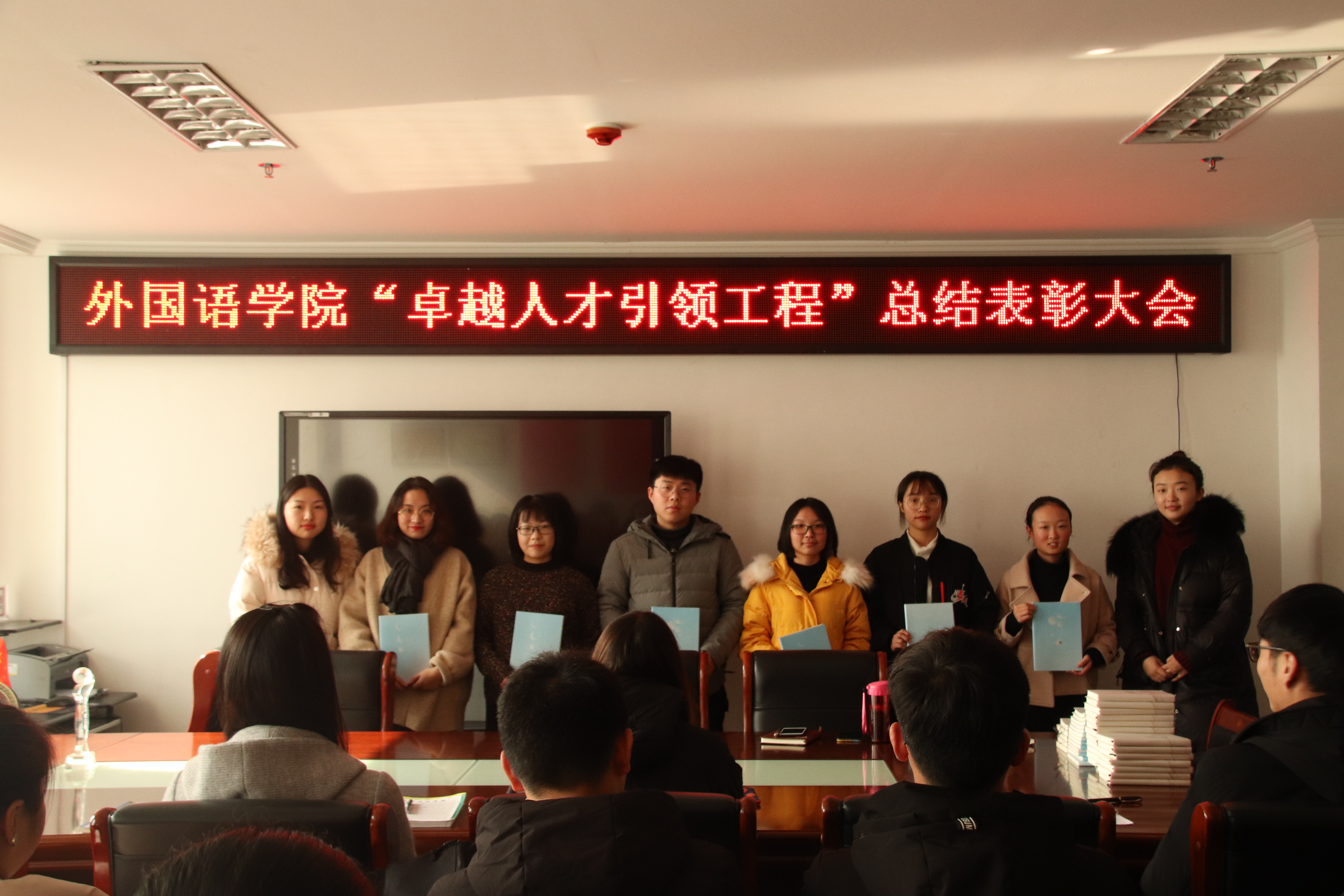 1220日中午,外国语学院卓越人才引领工程第二期培训活动表彰大会在行政楼803举行。学院党总支副书记吴宏、团总支书记范琼琼、辅导员朱俊梵、魏逸亭及本期卓越班成员参加了表彰大会。
