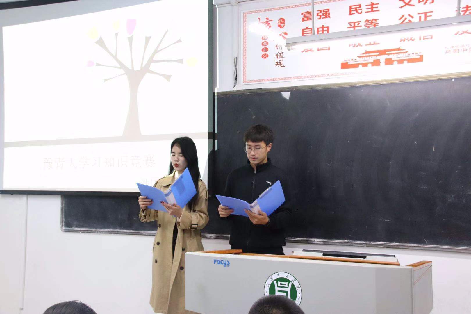 为了提高外国语学院19级学生学习“豫青大学习”积极性,院于11月21日晚7点在一教C303开展“豫青大学习知识竞赛”活动。2019级部分班级参与了本次活动。