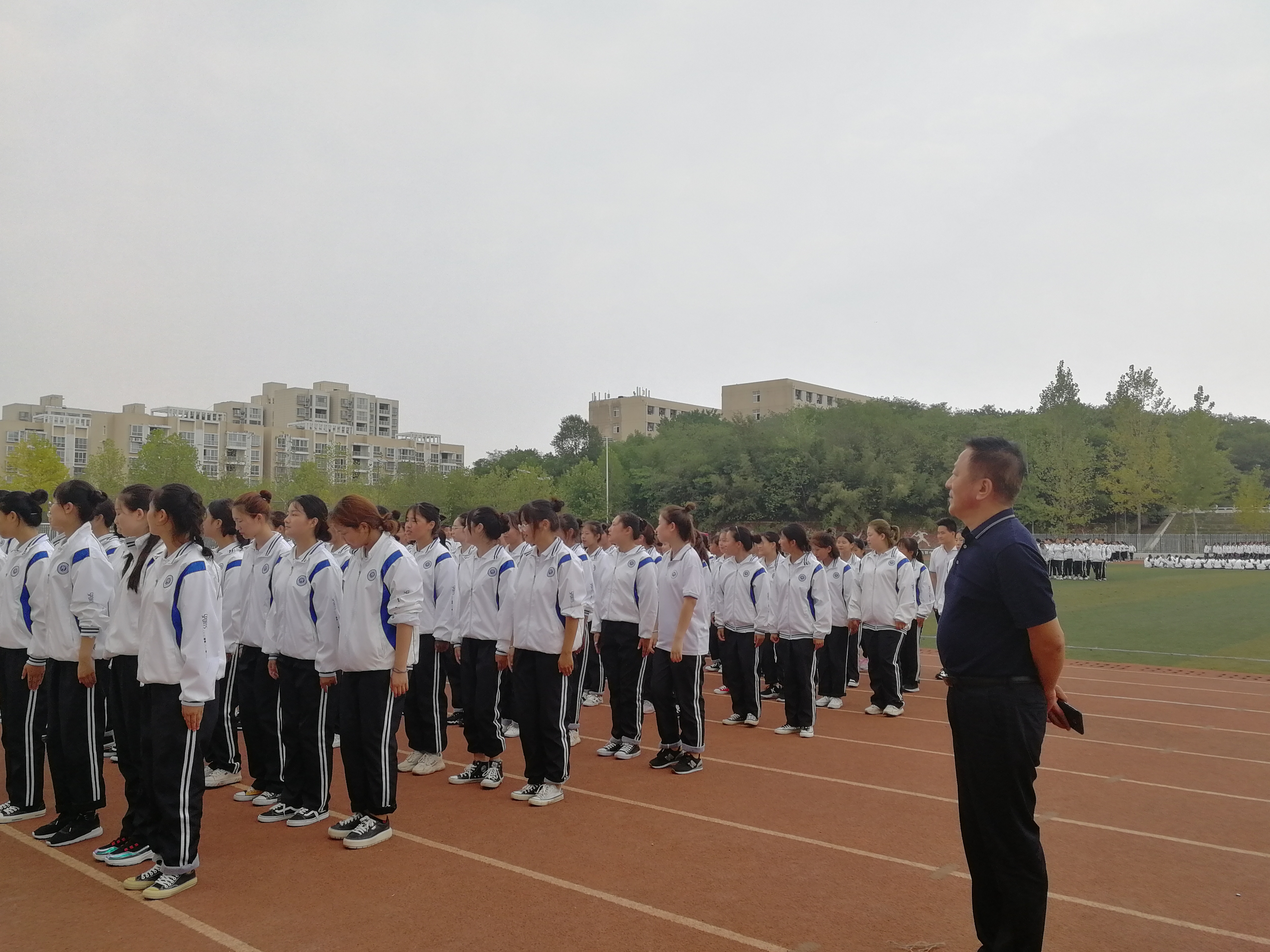 9月12日下午,我院党总支书记张志强、院长滕海、组织员、学工组组长吴宏、办公室主任郗杨、团总支书记范琼琼及武装专干朱俊梵一行人赶往2019级新生训练场地,亲切看望和慰问了新生辅导员、学生干部及军训的新生们。