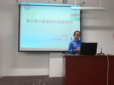 活动前期外国语学院的同学们踊跃报名,经过初选有13名同学进入决赛,参赛选手演讲过程中热情洋溢,展示出他们对读书与人生的思考,或引经据典,或直抒胸臆,评委们根据选手的演讲内容,现场表现等方面给出客观评价。在场的评委和观众都被选手们思想的深度所感染,在场的评委老师更是对学生演讲中对声情并茂的表达而动容。比赛结束,学院团总支书记吴宏和各位评委为优胜者颁发了荣誉证书和奖品,同时吴书记也对各位参赛选手的演讲做出点评。