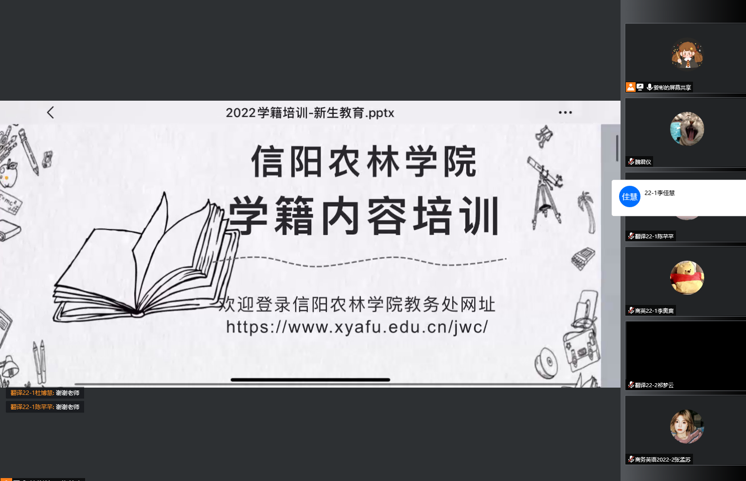 最后新生辅导员姜彬老师,就学籍相关问题,给大家进行了培训。姜老师仔细地给学生讲解了新生注册;转专业;学籍信息修改;入伍、休学、复学、退学情况下学籍管理的相关事宜;还给大家介绍了学分、选课、考证等学业生活息息相关的细节。继蔡院长之后再次强调了影响毕业的各条不能踩的“红线”,为了学生能修满学分顺利毕业指明了方向。
