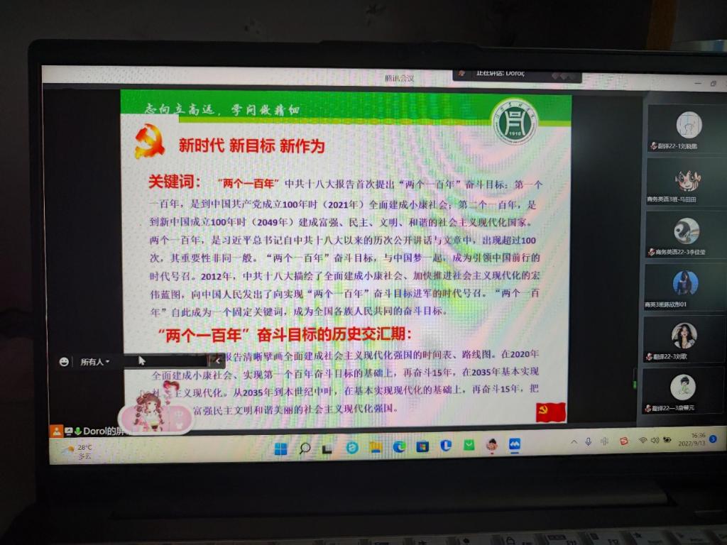 最后主讲人吴书记提及党的二十大将于2022年10月16日召开,激励2022级新生关注二十大的召开,并以积极的青春姿态迎新二十大的召开。此次会议圆满结束。