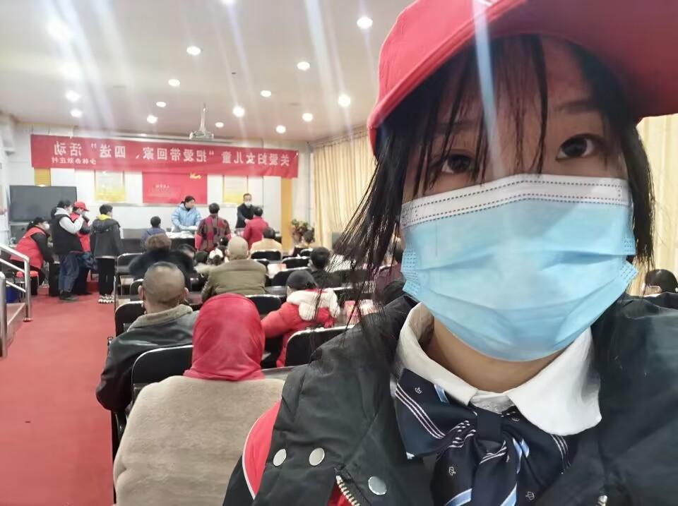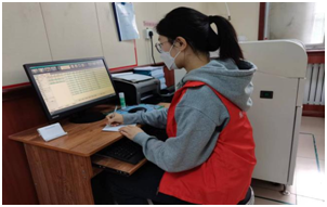 石晨熙于河南省郑州市登封市少林办事处进行材料整理,协助社区党团组织开展关爱妇女儿童爱心活动、留守儿童送温暖活动等