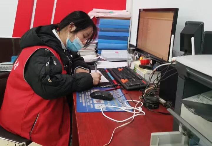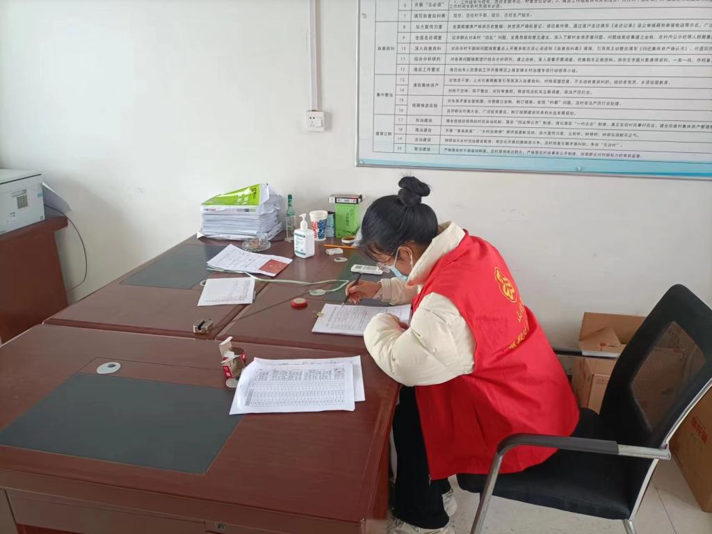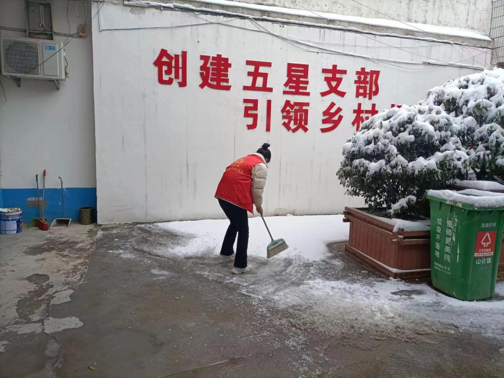 焦晓婷于洛阳市偃师区山化镇游殿村支部委员会协助支部整理文件并清理村委会积雪