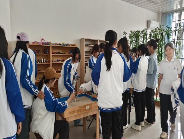 关老师首先带领大家参观了情绪宣泄室,并讲解了心理宣泄的相关知识,室内设施齐全,有沙包、跑步机、瑜伽垫等设施,为同学们宣泄情绪提供了多样的选择。然后又带领大家参观了沙盘室,同学们在沙盘中放置玩具放松心情,根据自己的想法进行构建组装沙盘,从而抒发真实想法。还有团体活动室,该房间主要用于开展团体咨询活动,教室的桌子用亮丽的颜色拼接,充满了阳光向上的氛围,有助于同学们保持乐观向上的心理态度。最后同学们参观了个人咨询室,该房间为同学们提供了保护隐私的一对一咨询服务,并且配备了按摩椅、催眠椅,可以有效帮助同学们缓解疲劳,降低压力,减少抑郁情绪,改善睡眠质量。