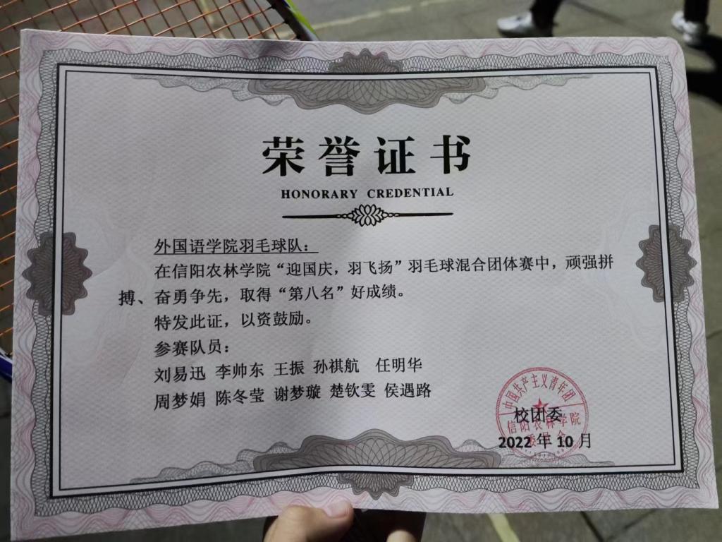 本次比赛,丰富了同学们的课余生活,增强了同学之间的凝聚力,充分展现出我院羽毛球队顽强拼搏、进取向上的青春风采。(外国语学院 刘易迅)