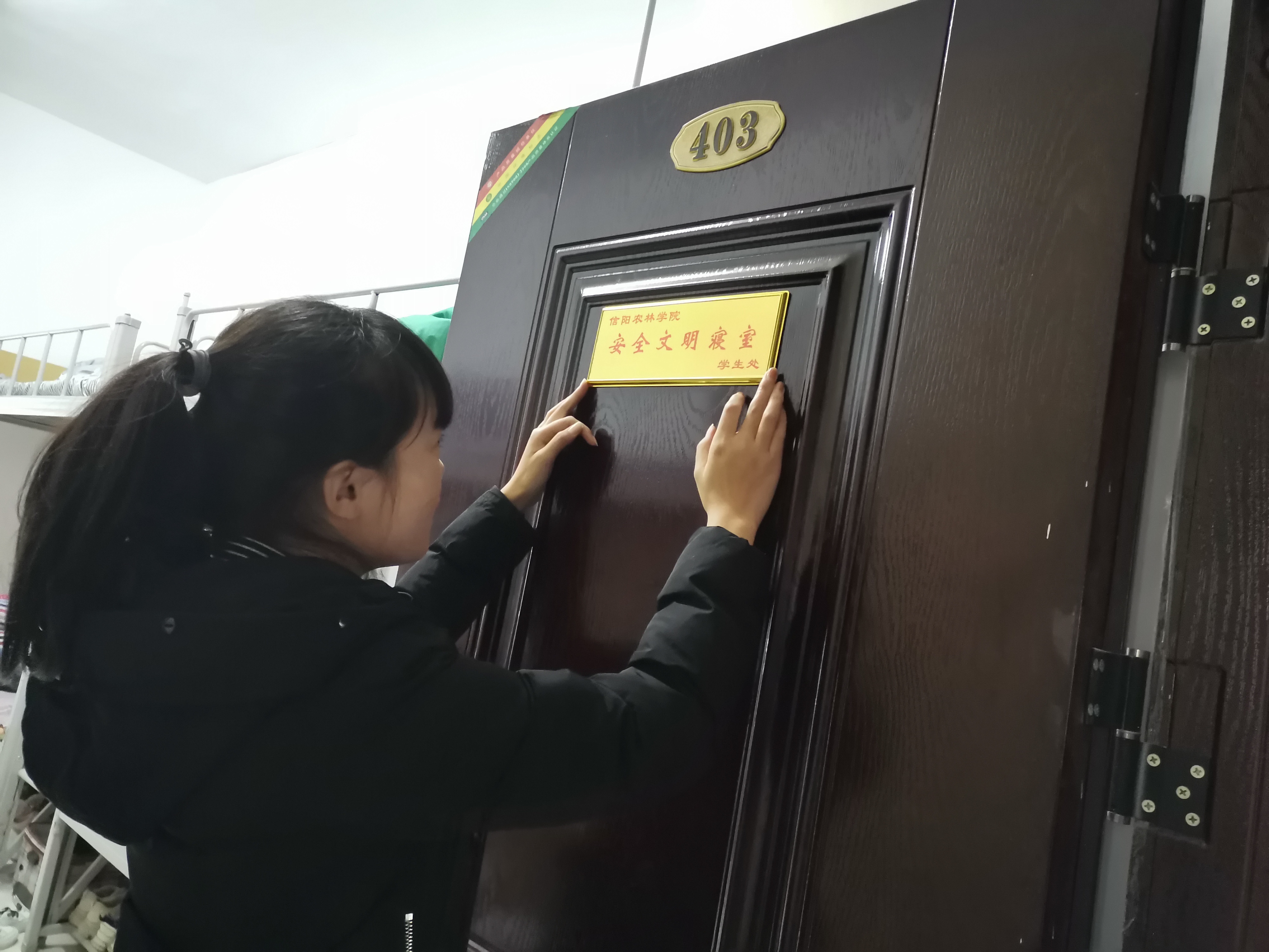 本次“文明寝室”挂牌活动圆满结束,加强了我院学生宿舍文化建设,提高了学生自律能力,增强了学生文明素质,对构建和谐美丽的校园环境和校园文化有积极作用。