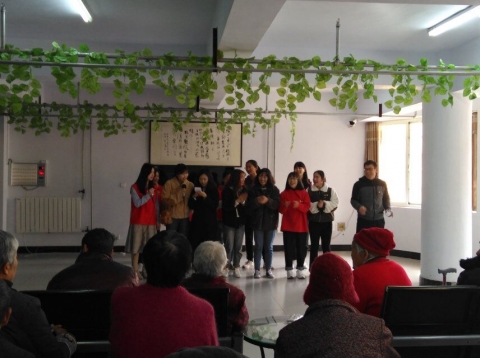 在和煦的阳光下,一场豫剧《朝阳沟选段》拉开了志愿服务联欢会的帷幕。紧接着,学生党员们带来的歌曲串烧和健美操舞蹈将整个联欢会气氛推上了高潮。紧随其后的是师生大合唱《明天会更好》、《精忠报国》、《学习雷锋好榜样》,真挚的歌声牵动着在场观众的心。志愿者表演后,敬老院的老人们也展示了自己的才艺,一位奶奶演唱了一段优美的秦腔,现场掌声不断,笑声连连,现场氛围十分热烈。表演结束后,志愿者们将早已准备好的水果和日常用品分发给老人们,老人们体会到了大家的关心与关爱,脸上露出了久违的笑容,临走依依惜别,希望我们常来。