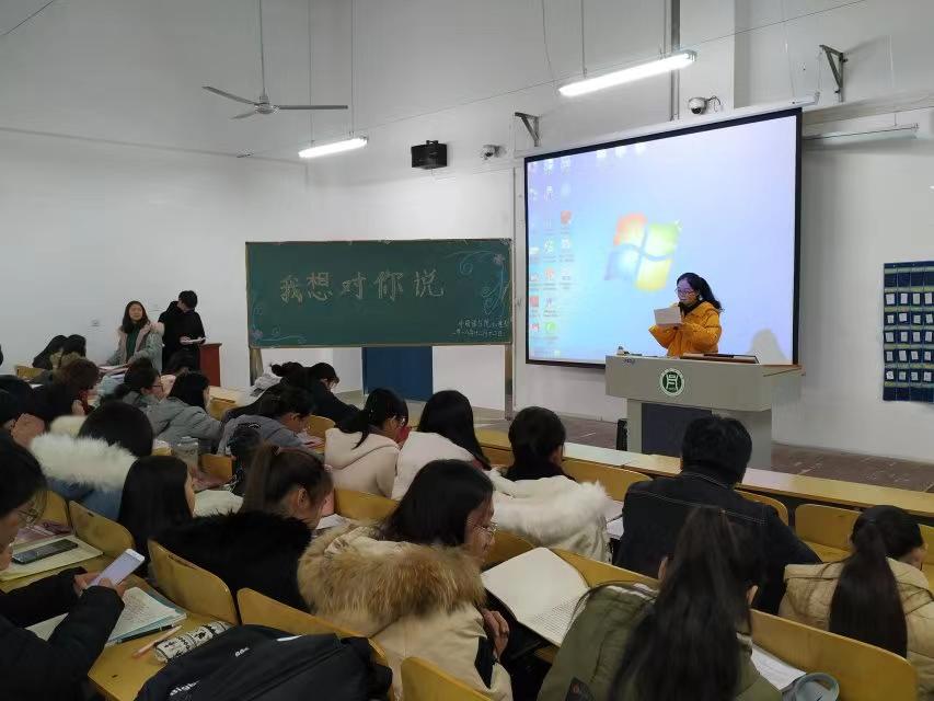为了让同学们重新体会写信的美好,以一种更为真实亲切的形式表现自己对亲友的爱意,2018年12月12日晚,外国语学院心理部举办了“我想对你说”书信朗读活动,大一全体学生参加了此次活动。