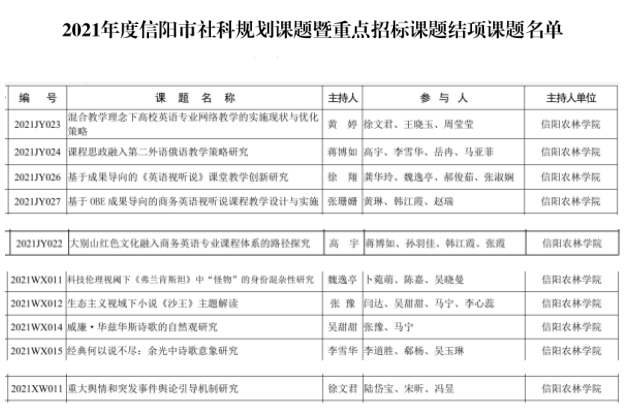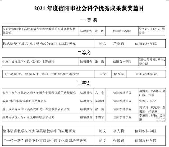 外国语教师在2021年度信阳市社科成果评奖中获得佳绩