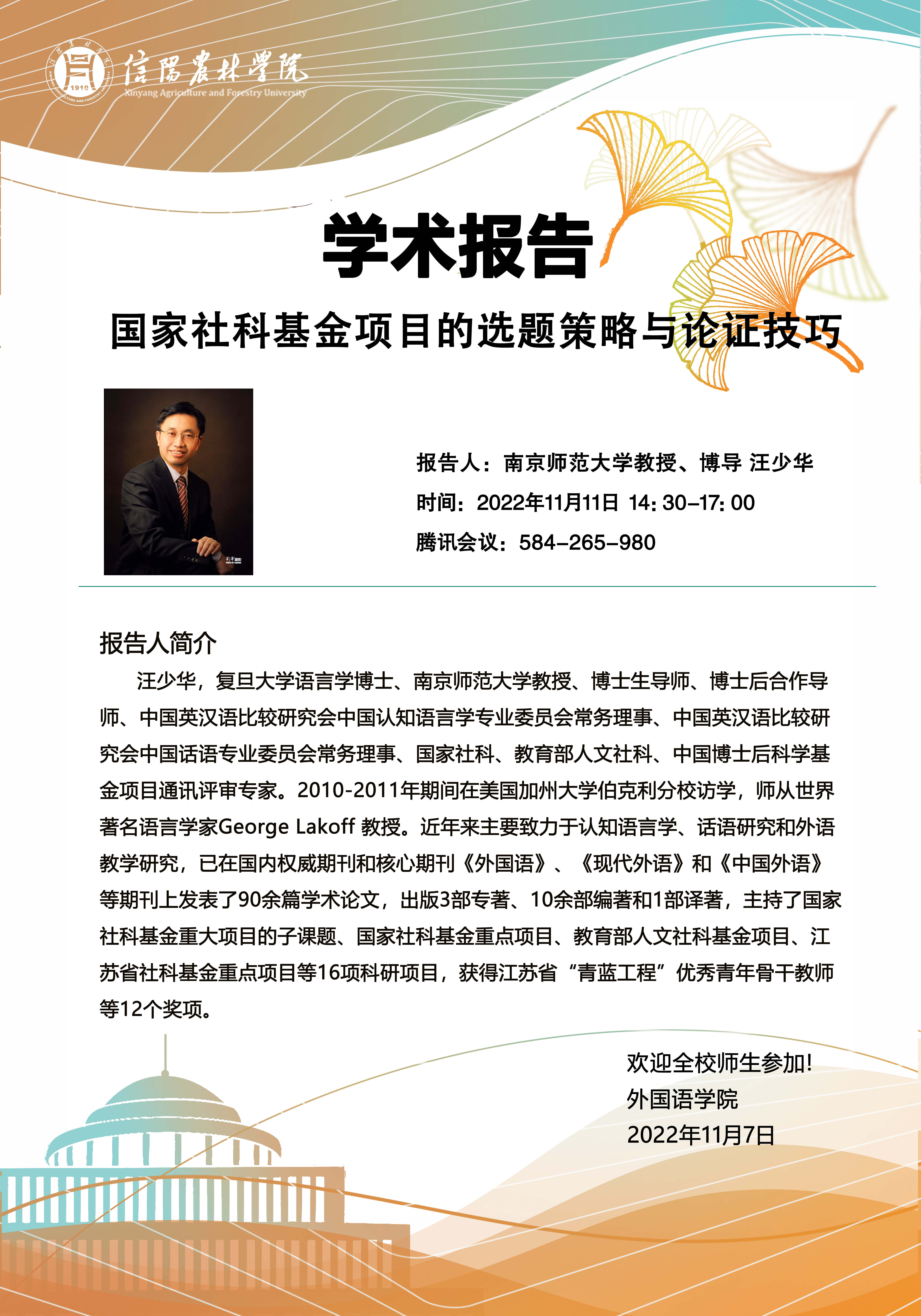 外国语学院学术报告----国家社科基金项目的选题策略与论证技巧
