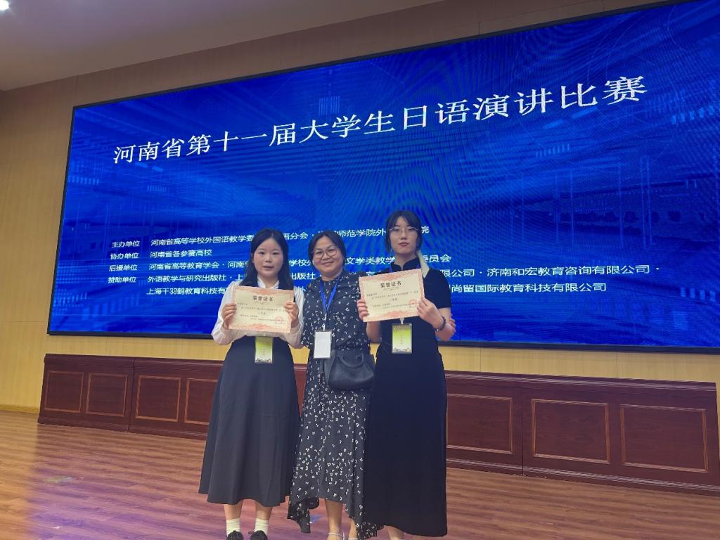 5月17日,由河南省高等学校外语教学委员会日语分会主办、洛阳师范学院外国语学院承办的河南省第十一届大学生日语演讲比赛决赛在洛阳师范学院成功举办,beat365在线平台官网外国语学院由教师魏君仪、李双双指导的商务英语专业学生徐文婷荣获一等奖;翻译专业学生李露莎荣获二等奖。