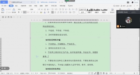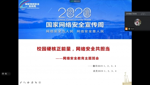 为提高同学们的网络安全意识,切实增强学生的安全防范意识,保障学生安全,外国语学院各班级于2020年9月19-20召开线上“大学生网络安全”主题班会。
