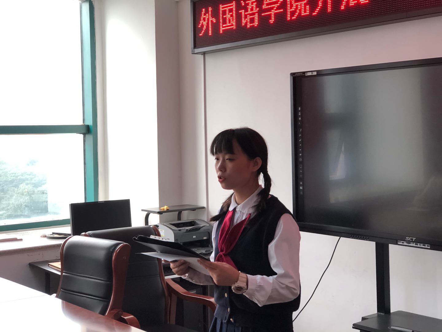 举国同庆四海升腾,中秋月圆桂花飘香。在这双节同庆之际,101日,外国语学院在行政楼803举办迎国庆,颂经典经典诵读活动,此次活动由外国语学院学生会代表岳子豪主持进行,各班学生代表参加。