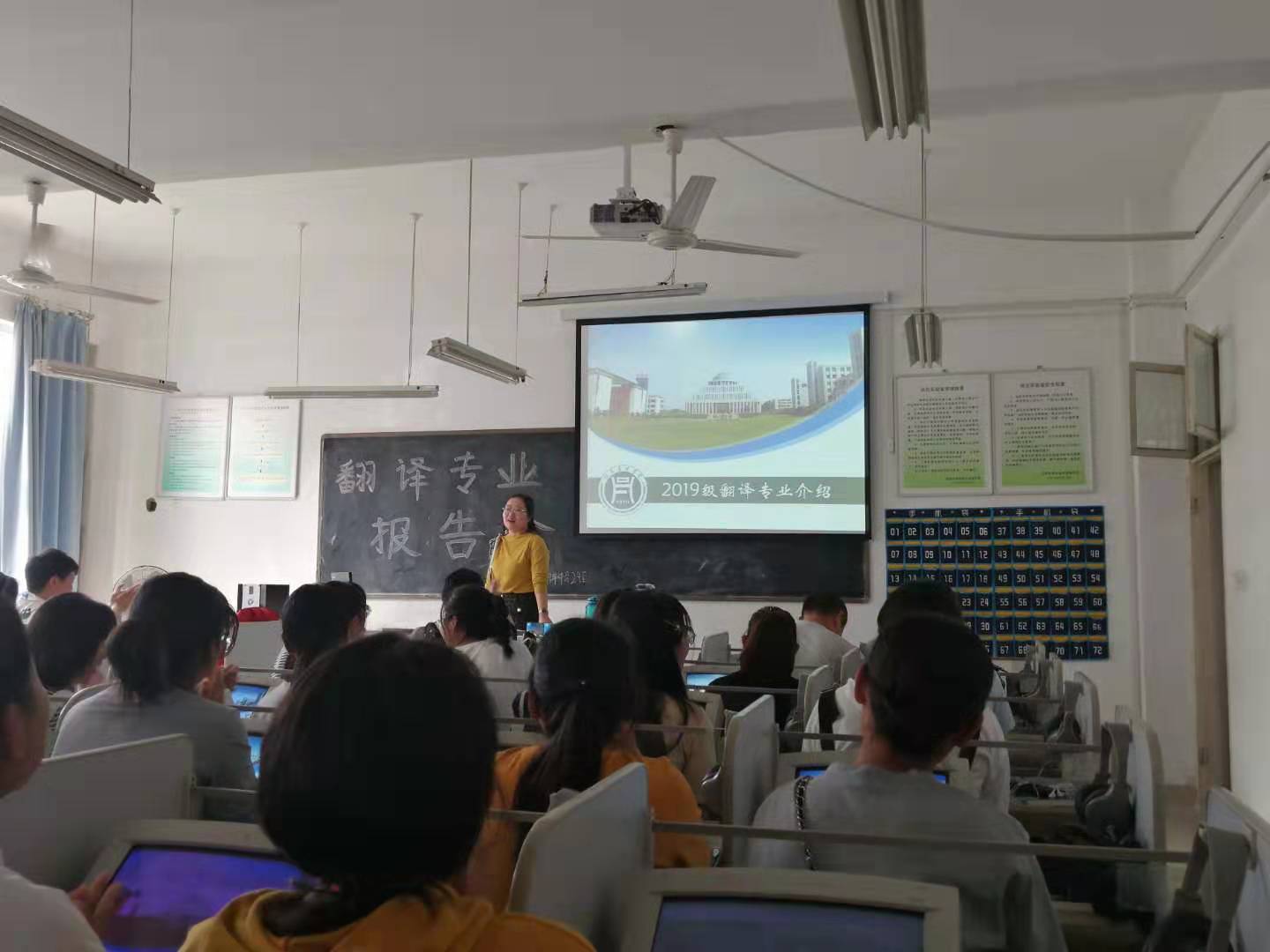 参与介绍会的还有翻译教研室骨干教师王珺玥、魏君仪、蒋博如、闫达,他们向同学们介绍了翻译专业及就业前景。老师们以自己的亲身经历告诉同学们,大学期间,要树立远大的目标,找到适合自己的学习方法。