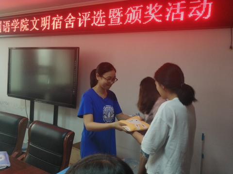 为进一步提高学生的宿舍安全卫生意识,创建整洁文明的学习生活环境,引导学生养成良好的生活习惯。6月13日至21日,外国语学院女生部开展了大一优秀宿舍的评比暨颁奖活动。我院团总支副书记范琼琼老师、辅导员朱俊梵老师参加了本次活动。