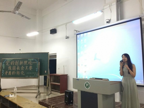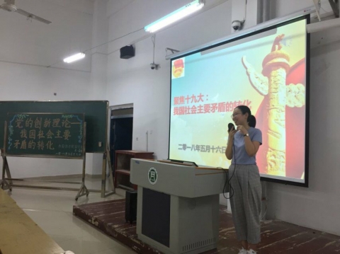 2018517日晚,外国语学院团总支副书记范琼琼在二教406召开聚焦十九大—我国社会主要矛盾的转化”主题团课外国语学院大一、大二全体团员参加了此次团课,大一辅导员左媛媛老师应邀参加了此次活动。