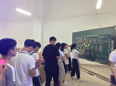 接着,范老师从四个方面对“我国社会主要矛盾转化”的内容进行阐述,详细介绍了我国社会主要矛盾的发展阶段、我国现阶段主要矛盾的一变三不变以及新时代我国主要矛盾变化的重大意义。范老师现身说法,通过大量的实例帮助同学们更加深入了解我国当前社会矛盾变化,并倡导大家以纸条的形式写出自己对国家、社会、学或者个人的愿望和期许