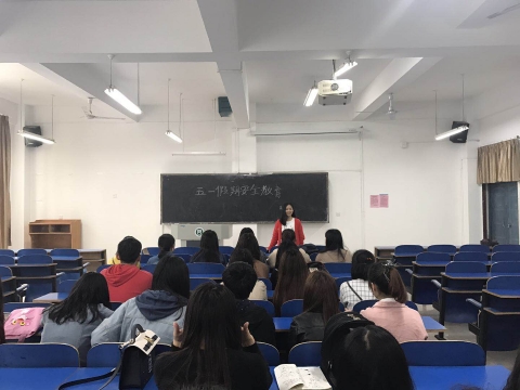 4月24日中午,辅导员沈克琳老师在一教103教室向大家传达了学校及学院对安全教育工作的重视,传达了大家假期期间要注意的几点:一、出行乘坐正规交通工具,外出要告知家人或老师朋友,注意人身及财产安全,保持联系方式畅通;二、预防春季传染病、预防不洁食物中毒等等,不离开校园的同学注意寝室安全,不要随便跟陌生推销人员接近,防传销进寝室;三、严禁在寝室使用大功率电器及酒精炉等,保障寝室安全。最后沈老师要求大家在5月1号晚上按时返校。