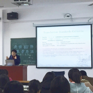 此次专题讲座主题为“英语翻译标准与方法”。首先副院长黄丽列举了明清时期一些中外翻译家的翻译标准,从严复的“信、达、雅“,傅雷的“神似”、“形似”到泰勒的翻译原则,使同学们对英语翻译标准有了初步的了解;接着,她以生动形象的案例给大家介绍了直译和意译这两种翻译方法并强调做好翻译要注重词汇的积累、明确单词的使用方式及功能,进而提升表达水准;最后,她概述翻译的三个步骤-分析源文本,将源语言转化成目地语,在目的语中重建文本;讲座在师生互动的良好氛围中结束。